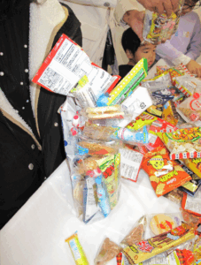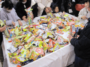 専用袋からあふれるくらいのお菓子を沢山詰めていて、真剣且つ楽しそうな表情が印象的でした。