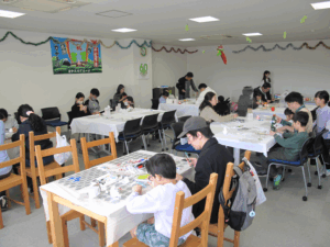 組立たり絵を描いたりシールを貼ったりと、1つしかないオリジナル作品を一生懸命作っていました。